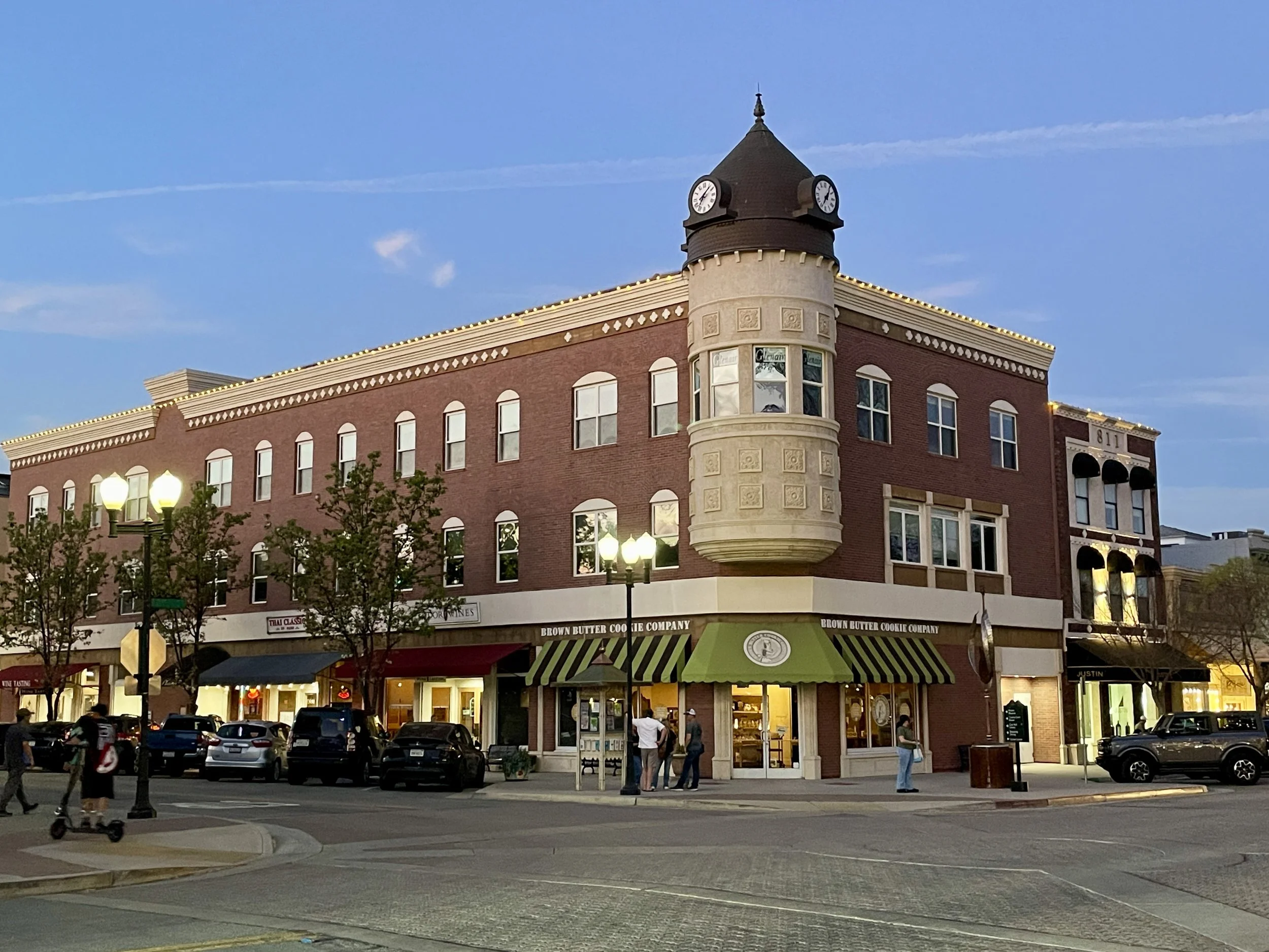 This is the rebuilt Acorn Building as it appeared in March 2026, with a replica clock tower at the top, after the original building collapsed in the 2003 earthquake. Photo by Tonya McQuade.