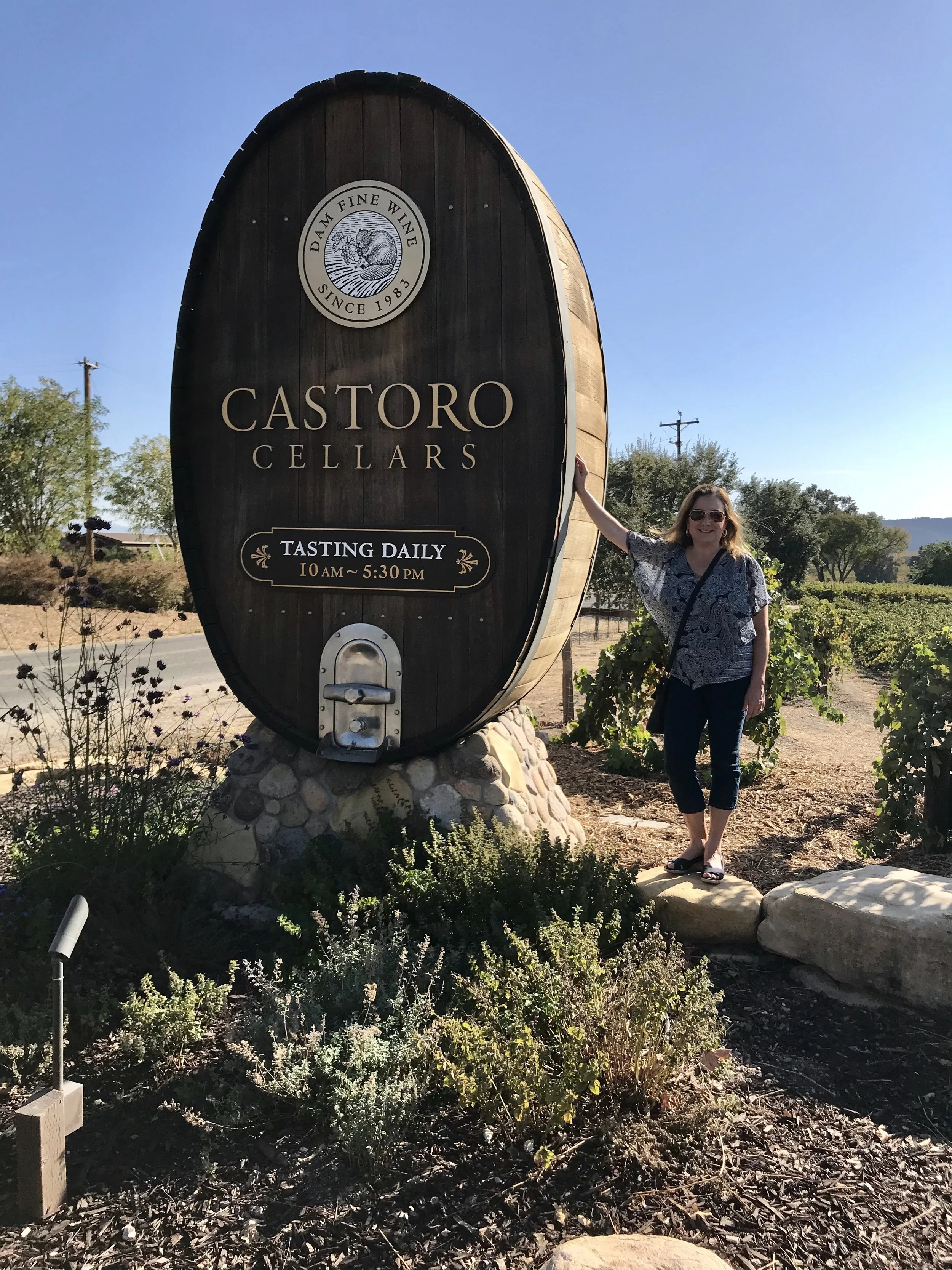 At the entrance to Castoro Cellars Vineyards & Winery, where we have been members for many years