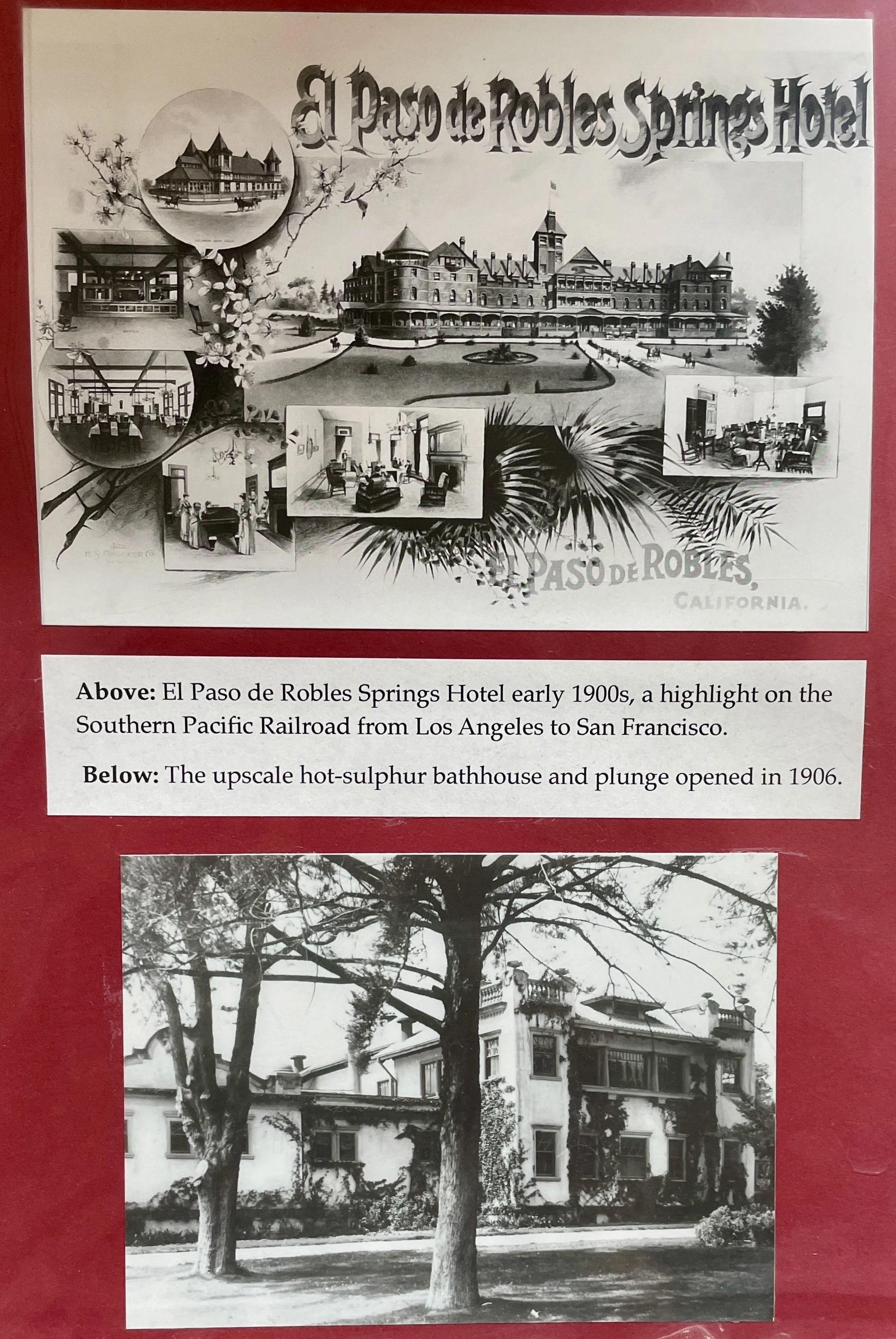 Early photo of the El Paso de Robles Hotel on display at the Pioneer Museum, located at 2010 Riverside Drive in Paso Robles